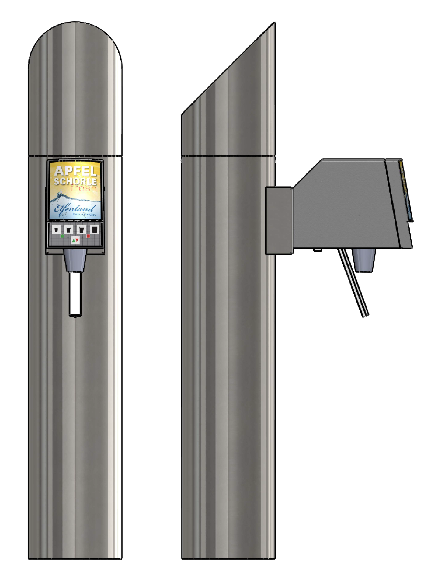 Nur eine Ausgabestelle möglich, jedoch freiwählbar ob Postmixventil oder Zapfhahn